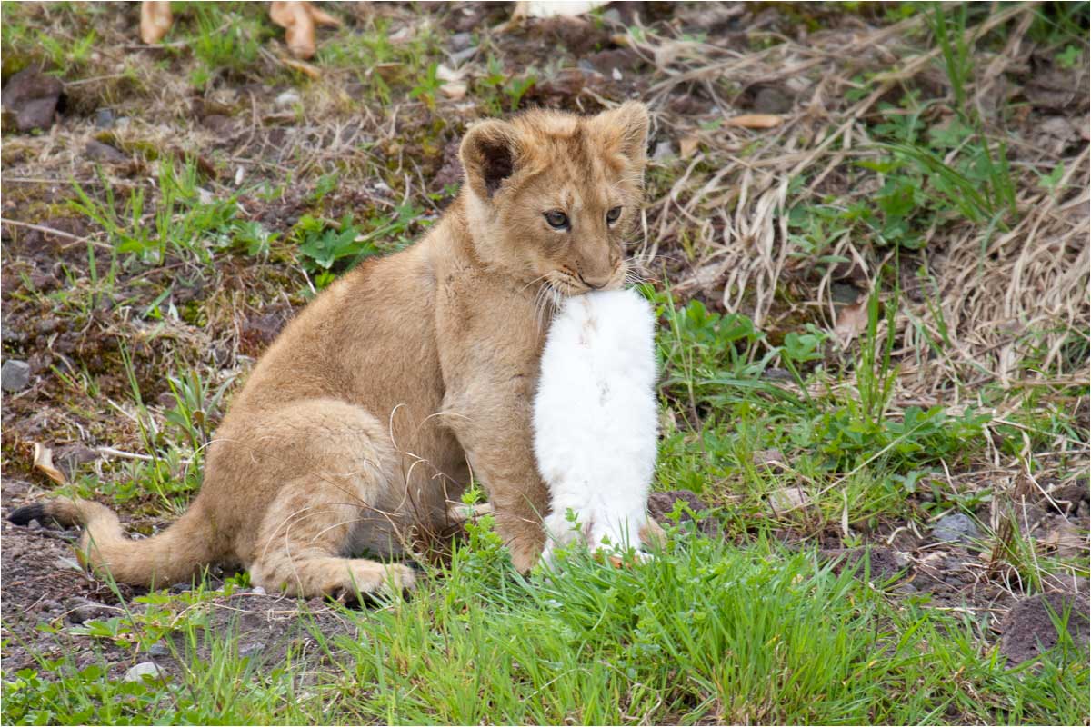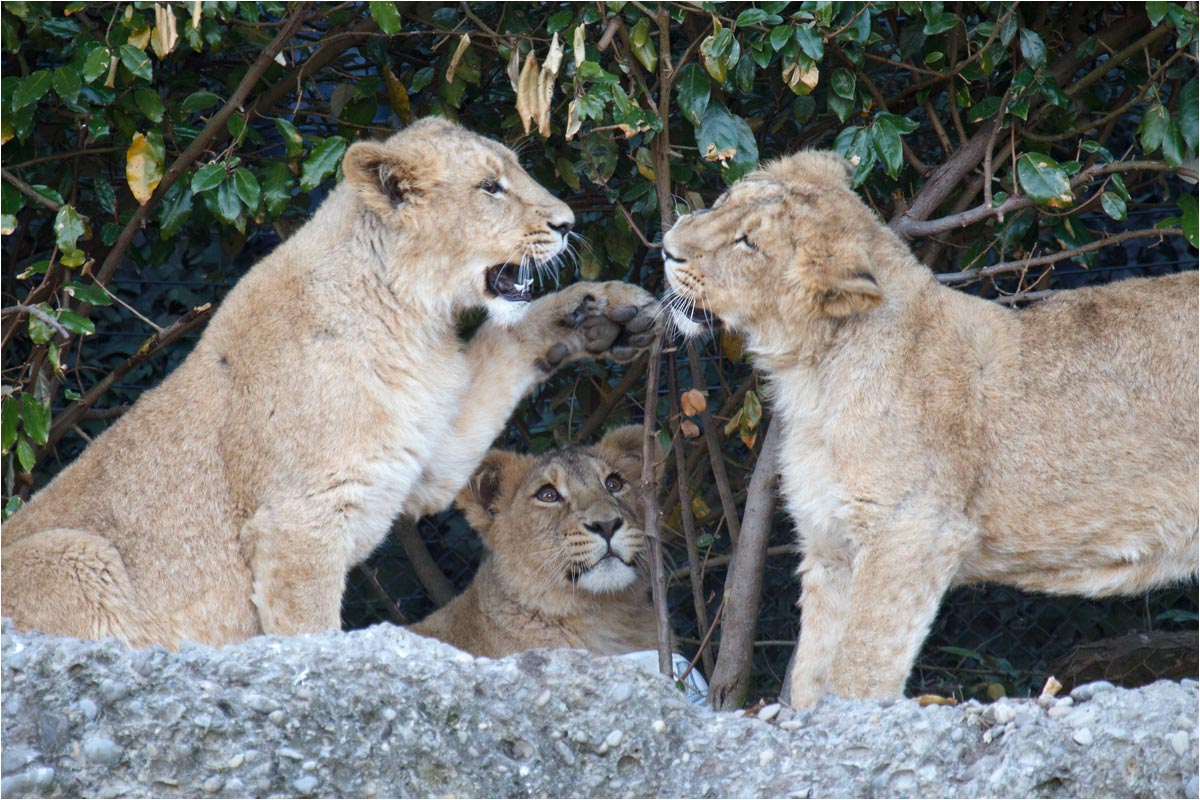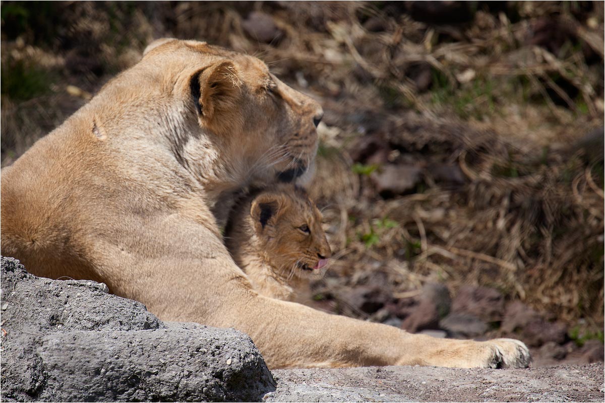 Löwe Zoo Zürich, Die kleine Jeevana gut geschützt in den "Armen" von Mutter Joy - Bild 1